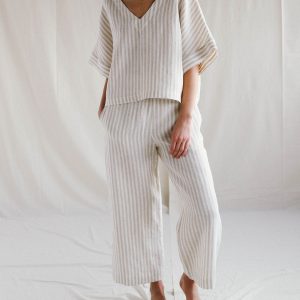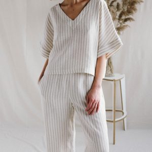 Oversized V Neck Linen Blouse And Wide Leg
